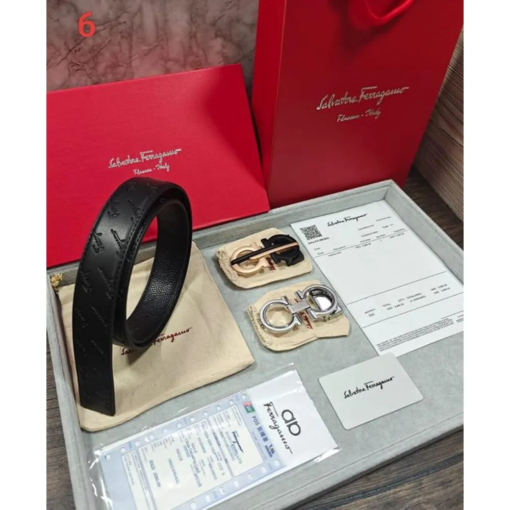 Stylish Salvatore Ferragamo Belt Double Buckle Combo With Ogbox Carrybag For Men (SW176)
