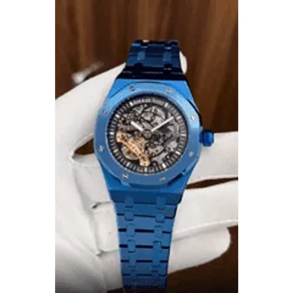 The stainless steel case is paired with a bold Royal Blue Stainless Steel Bracelet, giving the watch a rich, striking appearance. The bracelet includes the signature AP Folding Clasp, offering comfort, a secure fit, and a premium luxury wrist presence. With its water-resistant build, the watch is suitable for everyday use, lifestyle outings, and even light water exposure.
