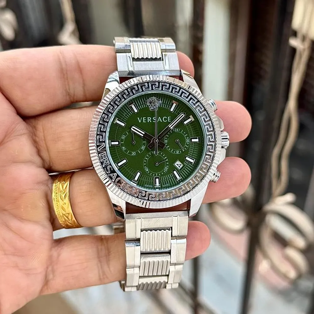 Imported Versace Greca Watch Silver Green For Men