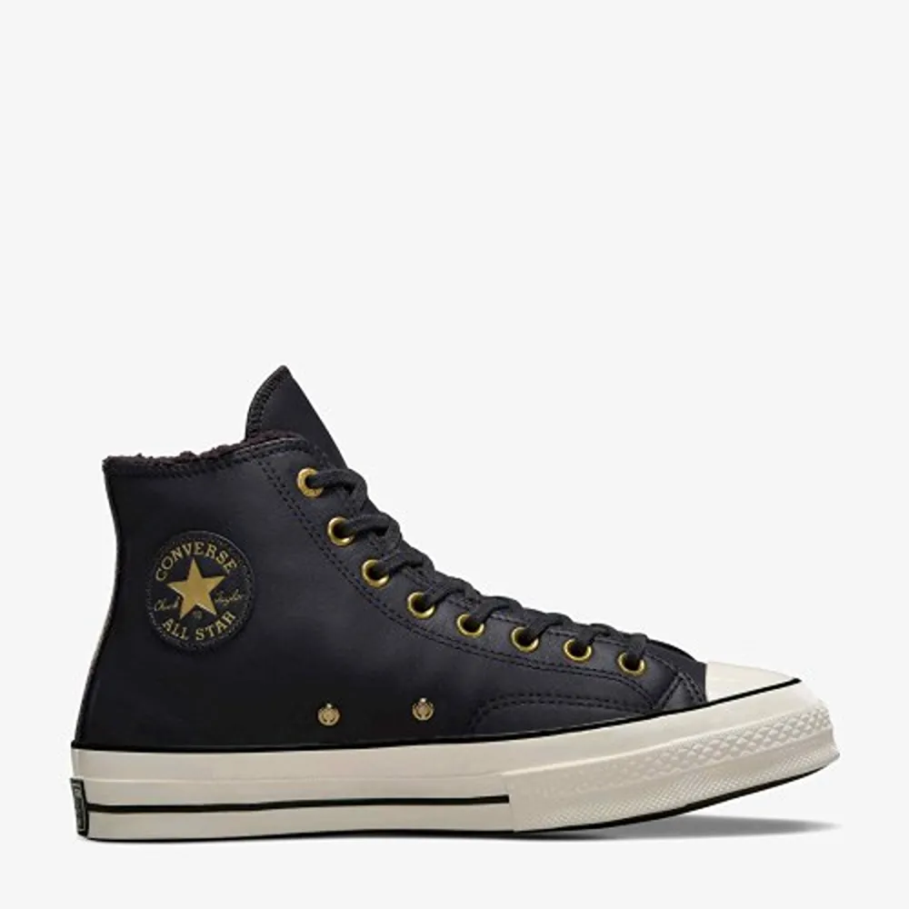Premium Conversee Chuck Black 70 Leather & Fur Sherpa Shoes For Men