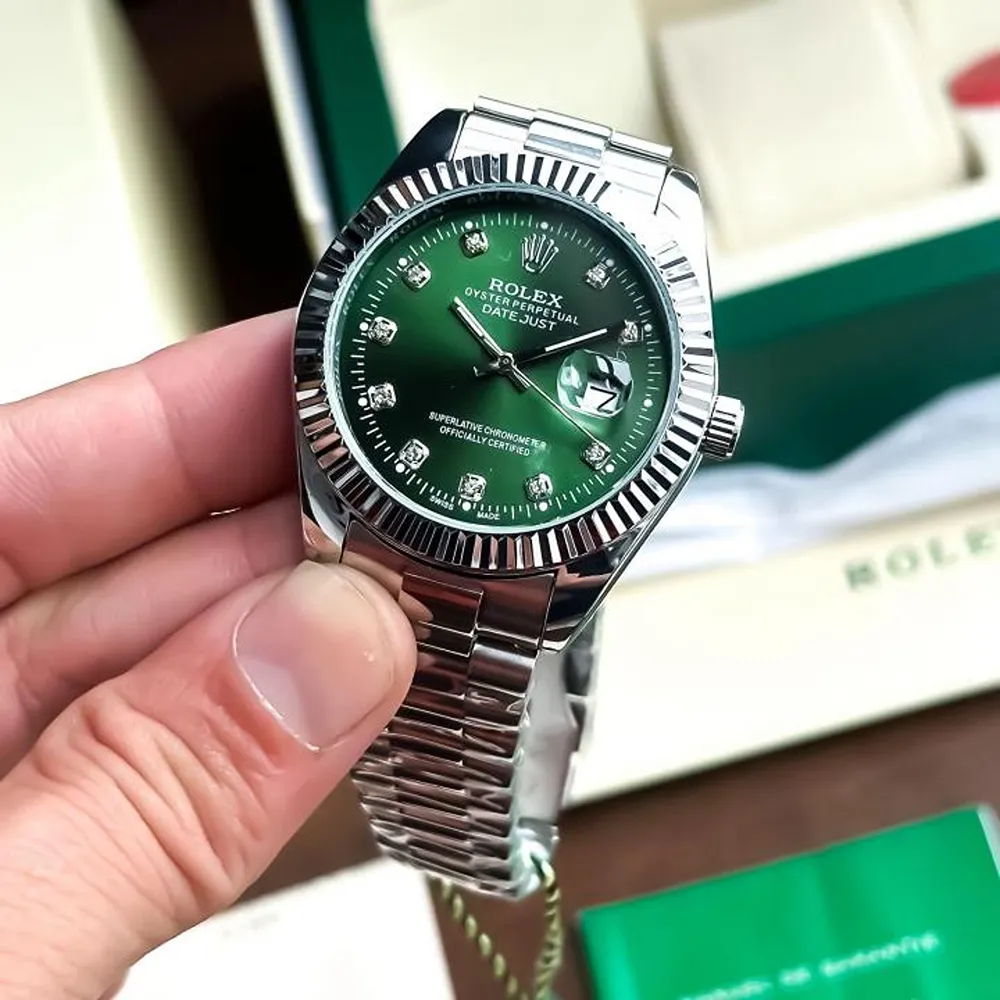 Rolex Oyster Perpetual Watch Date Just Silver Green For Men (SW229)