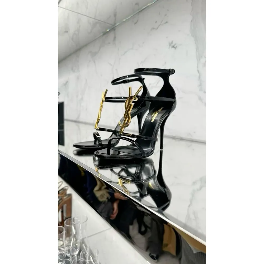 Stylish Saint Laurent Ysl Cassandre Black Gold Heels Sandals For Women